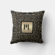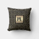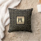 A faux gold foil square with a black script monogram initial overlaying a luxury gold oblong dots pattern on black, highlights this chic, girly, modern monogramed throw pillow. Makes a fun and stylish statement every time you relax on it. A great addition to your living room or bedroom, as well as a wonderful gift for a friend!