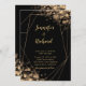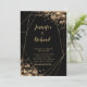 Our stunning black wedding invitation featuring accents of champagne-hued bokeh lights is sure to wow your guests. The geometric gold frame brings elegance to this modern invite shimmering with bokeh sparkles.