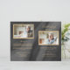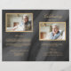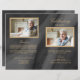 Funeral memorial program featuring on the front a photo of the deceased, thier name, dates, the memorial venue, date of the event, and elegant gold frame. On the inside is an obituary, and order of service; and on the back another photo, a thank you note and the second venue for after the funeral.