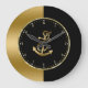 Black & Gold Geometric Design With Boat Anchor Large Clock