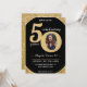 Black and gold glitter happy birthday party invitation for a 50 year old. Sparkly glam design great for women. Customise the age to suit your occasion and add a personal photograph of the recipient. Great for a 50th anniversary or birthday party for a fiftieth birthday bash.