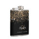 A stylish black background with faux gold glitter dust. Personalise and add her first name, monogram initials and full name. The first name is written with a modern hand lettered style script.