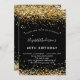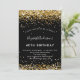 A modern, stylish and glamourous invitation for a 40th (or any age) birthday party. A black background decorated with faux gold glitter dust. The name is written with a modern hand lettered style script. Personalise and add your party details.