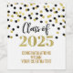 Graduation party custom wine bottle labels class of 2025 with black and gold glitter pattern confetti.