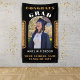 Elegant Black Gold Glitter Congrats Grad Photo Backdrop Banner. Modern design with faux gold glitter on a black background with graduate's name and a photo in an arch frame. The text is in bold fonts. You can customise any text on the backdrop.