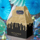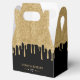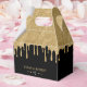 Black and gold glitter drip wedding favour box. Personalise it with your name and anniversary date.