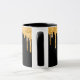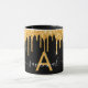 A girly and trendy monogrammed mug. A chic black background decorated with faux gold glitter drips, paint dripping look. Personalize and add a name and monogram letter. White and golden colored letters. The name is written with a modern hand lettered style script with swashes. To keep the swashes only delete the sample name, leave the spaces or emoji's in front and after the name.