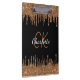 A classic black background with faux dark gold glitter drips, paint dripping look. Personalise and add a name and monogram initials. The name is written with a modern hand lettered style script. White and golden letters.