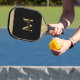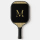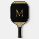 Black and Gold Elegant Monogrammed Personalised Custom Printed Pickleball Paddle with your name and large initial in chic classic fonts. Change fonts and background colour using the Zazzle Template Editor.