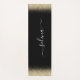custom monogram first name in a fancy signature sytle on black gold glitter yoga mat.