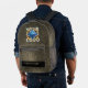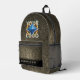 Make your branding shine—figuratively. This striking custom logo backpack features a faux gold glitter texture across most of the design, grounded by a sleek black stripe on the front zippered pocket. Your logo sits right across the main panel—designed for maximum visual impact and stylish contrast.