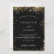 A modern, elegant wedding invitation. Black background decorated with faux gold glitter sparkles. Personalize and add your names and wedding details. White colored letters.
