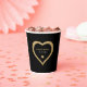 Black and gold glitter heart wedding / bridal shower paper cup. Personalise it with your event details.