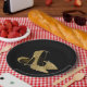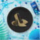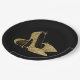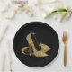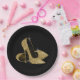 Gold glitter high heel shoe birthday party and event paper plates. You can add text to personalise, and change the background colour on these beautiful black and gold high heel shoe paper plates.