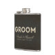 This stylish flask design by The Spotted Olive™ features a black background with an image of streaming gems coming down from the top and the word "groom" filled with an image of gold glitter. PLEASE NOTE: THIS DESIGN ONLY FEATURES A PRINTED IMAGE OF GLITTER; THERE IS NO PHYSICAL GLITTER USED OR INCLUDED; THERE ARE NO EMBELLISHMENTS. Copyright 2014-Present | The Spotted Olive™ | All Rights Reserved