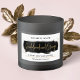 Elevate your candle boutique packaging design with this black and gold product stickers. This black watercolor and gold foil effects candle jar label has space for your product name and scent and your company details. The faux gold glitter and modern script font will make your product jars, containers or tins lux and glam! You can use this rectangle packaging sticker as a candle label, soap or bath product sticker or a label for any other type of product, simply edit the text to suit your needs.