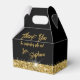 Fun and funky and modern artsy party favour box with yellow gold glitter border on a black background with custom thank you brush script text, perfect for a modern and chic birthday, bat mitzvah, Quinceañera, bridal shower, baby shower or bachelorette party. Use the Template Design Tool to change fonts, colours and design to create a fun and unique personalised favour box for your party guests guests.
