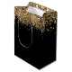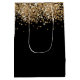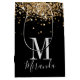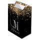 Black gold glitter monogram custom name medium gift bag