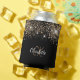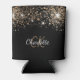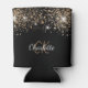 A chic black background with faux gold glitter spots. Personalise and add a name and monogram initials. The name is written in a golden colour with a modern hand lettered style script. Perfect for birthday parties, bridal showers and bachelorette parties.