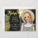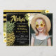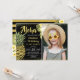Black Gold Glitter Pineapple Floral Birthday Photo Invitation