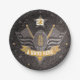 Black & Gold Glitter School Football Team Sports Paper Plate