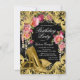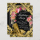 Black and gold glitter high heel shoe birthday party invitations with elegant gold glitter high heels hoes on a beautiful pink rose and pearl gold swirl glitter background. These black, gold and pink birthday party invitations are easily customised for your event by simply adding your details in the font style of your choice. This is a printed design with no real pearls, glitter, etc.