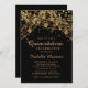 Elegant Quinceañera birthday party invitation with beautiful glittery gold string lights and sparkling bokeh on a black background. Contact us for help with customisation or to request matching products.