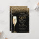 This elegant design features a black background, gold glitter, champagne glass, and custom script lettering. What a beautiful way to invite your guests to this special occasion.