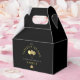 Elegant black and gold 65th birthday party favour box. Customise it by adding your age and name. Great for a formal / luxury look and feel. Perfect for any retirement age senior citizen in the golden ages of 65 to 80 years old. Unisex design for men and for women.