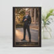 Black gold portrait design featuring a formal graduate photo framed by a double gold border with soft light accents. Script typography pairs with a dark textured background, ideal for hosting a polished evening celebration with dinner, drinks, and dancing.