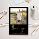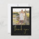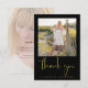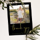 Celebrate your achievement with this elegant graduation thank you card featuring a black and gold design with stylish calligraphy script. Personalise it with a photo of the graduate and a heartfelt message to thank friends and family. Perfect for any high school or college grad, this class of themed card combines modern typography with a sophisticated touch. Show appreciation in style with this timeless keepsake!