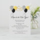 New Years Eve party invitation with gold, silver and black balloons. Personalise three fields with your information.