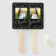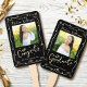 Stay cool while supporting your favorite grad as they receive their diploma with this quirky, whimsical, simple, modern keepsake 2 photo hand fan. Fun white and faux gold tone handwritten script typography and hand drawn graduation icon sketch doodles overlay a dramatic black background. The copy “congrats” and photo 1 are on the front, the word “graduate” and photo 2 are on the back. Personalize the custom text with your graduate’s name, school and class year. Matching invites, thank you cards, stickers, banners, yard signs and other graduation goodies are also available in this trendy and playful collection. Guaranteed to preserve cherished memories of their special occasion!