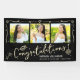 Announce to the world that your favorite grad has reached their milestone with this quirky, whimsical, simple, modern, personalized 3 photo banner. Fun, white and faux gold tone handwritten script typography and hand drawn graduation icon sketch doodles, along with 3 photos of your choice, overlay a dramatic black background. Personalize the custom text with your grad’s name, school and class year and your 3 photos. Choose from numerous sizes as well as indoor or outdoor options. Matching invites, thank you cards, address labels, hand signs, foam core welcome boards and other graduation goodies are also available in this trendy and whimsical collection. Guaranteed to preserve cherished memories of their special occasion!