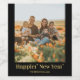Celebrate the season with this stylish holiday photo wine label. This design features stylish gold lettering "Happier New Year" with custom text on a black background. You can personalise the text and insert your photo. More holiday gift designs are available at my shop BaraBomDesign.