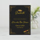 Elegant black and gold high school graduation announcement featuring a sophisticated art deco design on the front and a customizable photo option on the back.