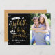 Black & Gold HOLLY JOLLY CHRISTMAS Photo Card. Customise with any text.