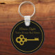 This chic realtor keychain is custom made with your real estate company under the the realty agent name in gold typography on black. A beautiful old fashioned gold key adds a classic touch to this elegant housewarming gift.