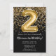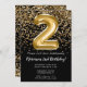 Black Gold Kids Girl 2nd Birthday Party Invitation