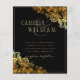 The intricate gold lace foil-look design contrasts beautifully against the black background, creating a dramatic and luxurious effect. These invitations are perfect for formal or black-tie weddings, as well as modern weddings with a touch of glamour.
