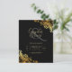 The intricate gold lace foil-look design contrasts beautifully against the black background, creating a dramatic and luxurious effect. These invitations are perfect for formal or black-tie weddings, as well as modern weddings with a touch of glamour.