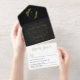 Black Gold Leaf Adorned Shield Monogram Wedding All In One Invitation