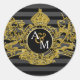 Black Gold Lion Unicorn Regal Emblem Monogram Classic Round Sticker