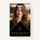 A simple custom icon business name badge template in a modern minimalist style on a sleek black background with gold text. The versatile template can easily be updated with your company logo, graphic or photo, name, title or company name.