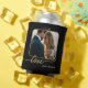 Elegant can cooler featuring your custom photos on front and back, framed by a black and gold design with stylised "love" script text (optional). Beautiful as a wedding gift, to use at the reception, or keepsake. And customisable for any other occasion.