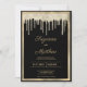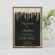 This luxury, modern, minimalist black and gold glitter drips border Wedding Invitation is inspired by the simple and elegant, but with subtle hints of contemporary influence. It features a glam gold glitter drips border on a simple black background. This classic and luxurious design is sure to be a big hit with all your guests. All designs are printed.