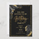 Black Gold Luxury Tropical Leaf Happy Birthday Invitation