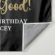 Black Gold Making AGE Look Good Name Confetti Tapestry Backdrop Sign. Celebrate any age birthday for her or him with this elegant, custom colour personalised tapestry sign or photo op backdrop personalised featuring the editable age title MAKING "AGE" LOOK GOOD with faux metallic gold foil modern script typography and confetti and name or your custom text (shown with HAPPY BIRTHDAY NAME) in your choice of background colour (shown in black) to coordinate with your party theme colours. ASSISTANCE: For help with design modification, transferring the design to another product or for coordinating items, contact the designer BEFORE ORDERING via the Zazzle Chat MESSAGE tab below or email makeitaboutyoustore@gmail.com.