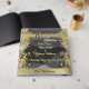 A luxurious wedding guest book featuring a rich black marble background, gold accents, sparkling highlights, and elegant modern typography. Perfect for capturing heartfelt messages, warm wishes, and signatures from guests on your special day. The design offers a sophisticated, upscale look that complements weddings, receptions, and formal celebrations. Fully customizable with names, dates, and event details.