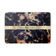 Personalise black name and gold monogram on large gold stripe on black and gold marble. Version 2.